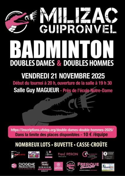 Milizac Badminton organise son Tournoi Double Dames et Double Hommes ,